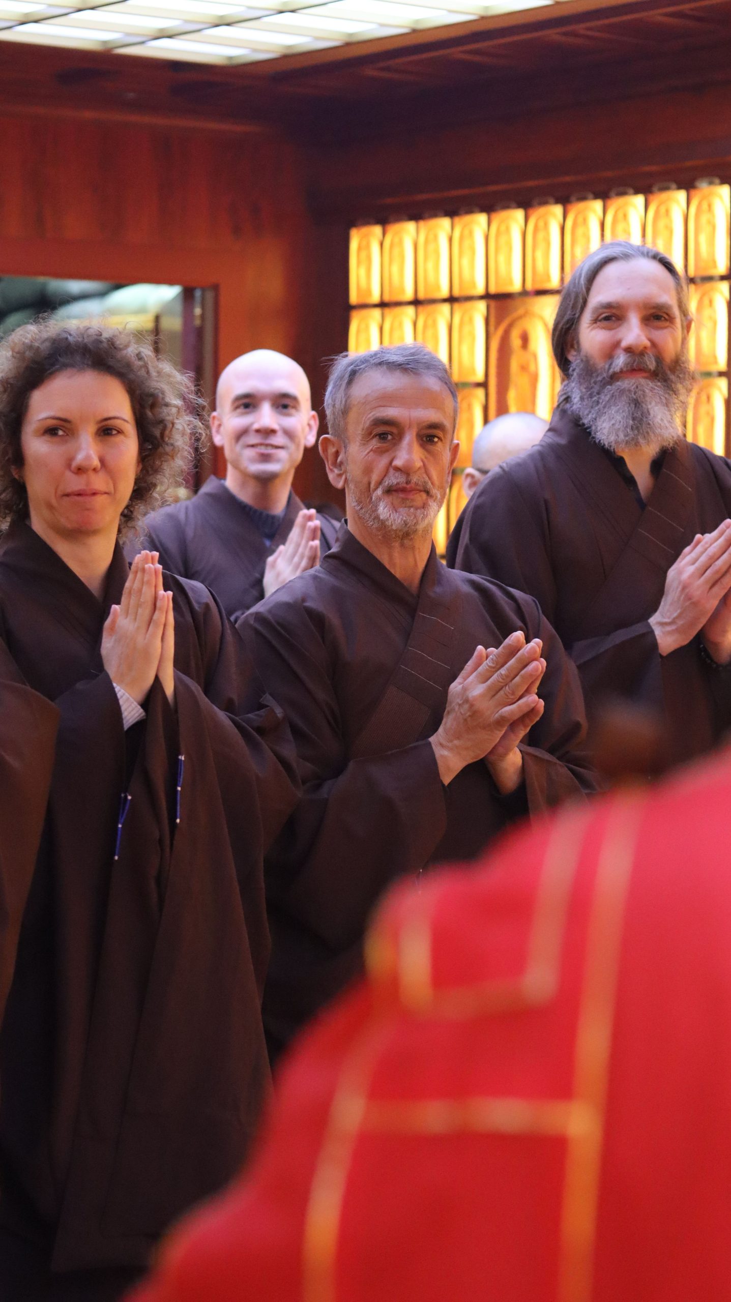 Un momento histórico y conmovedor fue la Toma de Refugio Presencial, presidida por el Maestro Renshan, quien también dirigió toda la ceremonia. Durante este acto solemne, los españoles que asistieron a la ceremonia, residentes en Barcelona, se convirtieron en los primeros en tomar refugio en la escuela de Tierra Pura de esta comunidad.