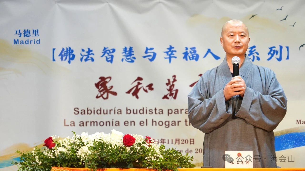 Este año, coincidiendo con el 5.º aniversario de la Asociación Budista Hai Hui Shan en España, y en respuesta al espíritu del VI Foro Mundial de Budismo, la asociación ha organizado una serie de eventos en España bajo el lema “Con la alegría tan grande como el mar y las montañas, los destinos de las personas entran en armonía”. Estas actividades, lideradas por el Maestro Ren Shan, se llevarán a cabo entre el 20 de noviembre de 2024 hasta el 7 de enero de 2025 para promover la cultura tradicional china y el intercambio cultural entre China y España. La inauguración tuvo lugar el 20 de noviembre en el salón de conferencias del Ayuntamiento de Usera, con una participación aproximada de 300 personas, incluidos representantes del gobierno, líderes de la comunidad china y diversas personalidades.