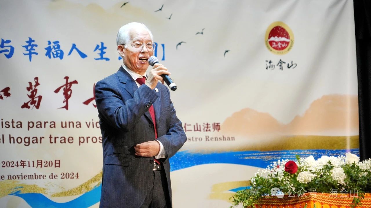 Nie Yemin, presidente honorario vitalicio de la Asociación de Qingtian, resaltó la importancia del budismo como parte de la cultura tradicional china y elogió el impacto positivo de Hai Hui Shan en la comunidad y en los intercambios culturales.