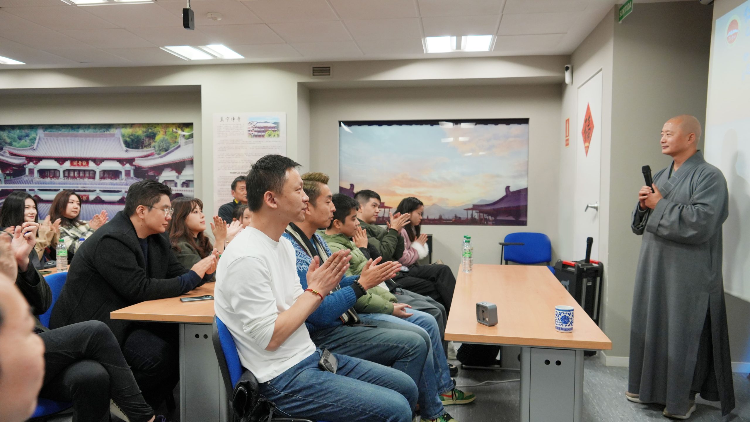 La actividad atrajo a numerosos jóvenes, incluidos estudiantes chinos en España, fomentando en ellos una comprensión más profunda del budismo y la rica cultura tradicional china. Desde el inicio, el Maestro Renshan utilizó un enfoque ameno y accesible para conectar con los asistentes, integrando rápidamente a los participantes que tenían poco conocimiento previo sobre el budismo o la cultura china en el ambiente de la charla.