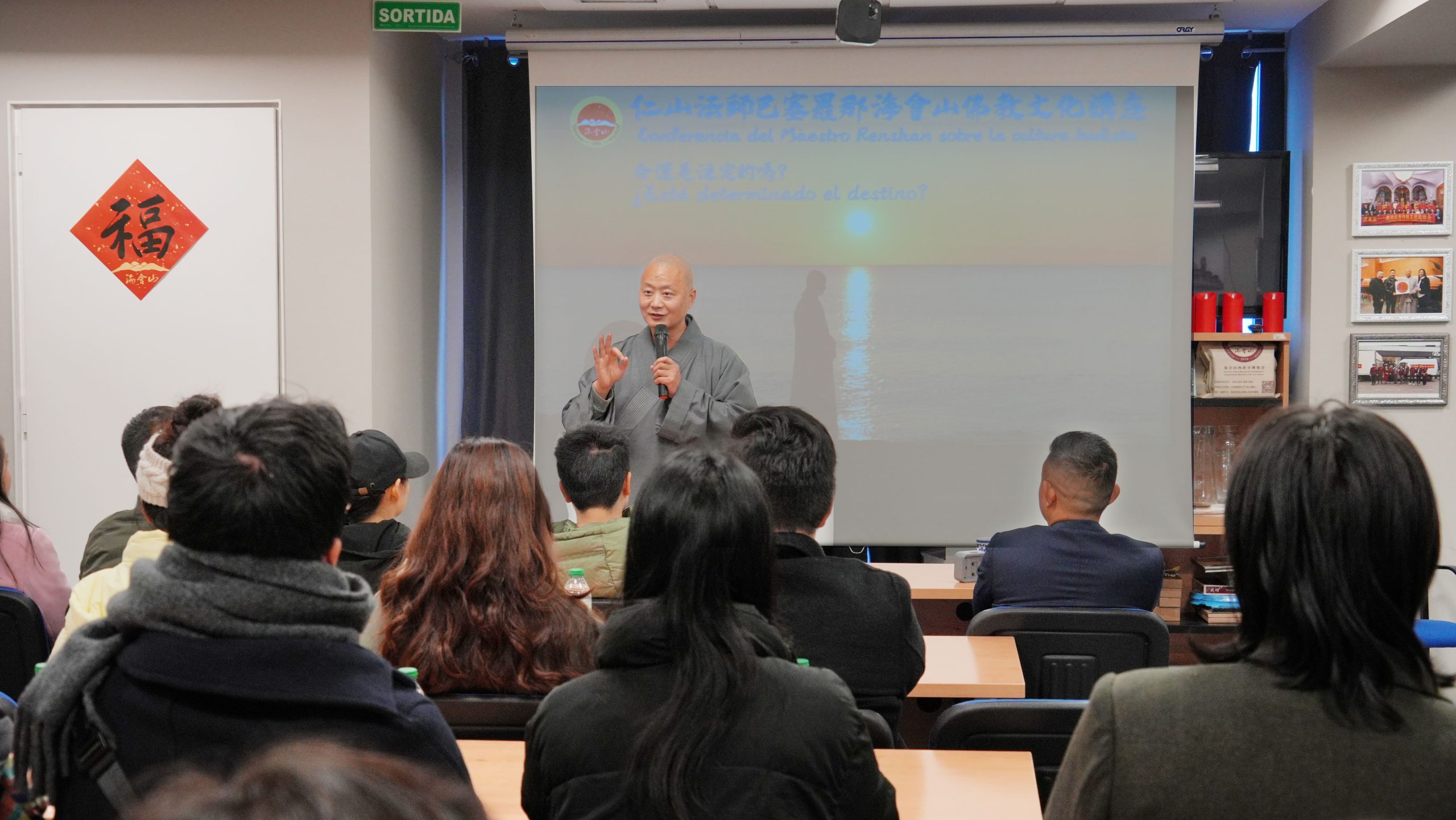 El pasado sábado 14 de diciembre de 2024, correspondiente al día 14 del undécimo mes del calendario lunar, el Maestro Renshan ofreció una conferencia titulada “¿Está el destino predestinado?” en el salón principal de la Asociación Budista Hai Hui Shan de España, situada en la soleada ciudad mediterránea de Barcelona.